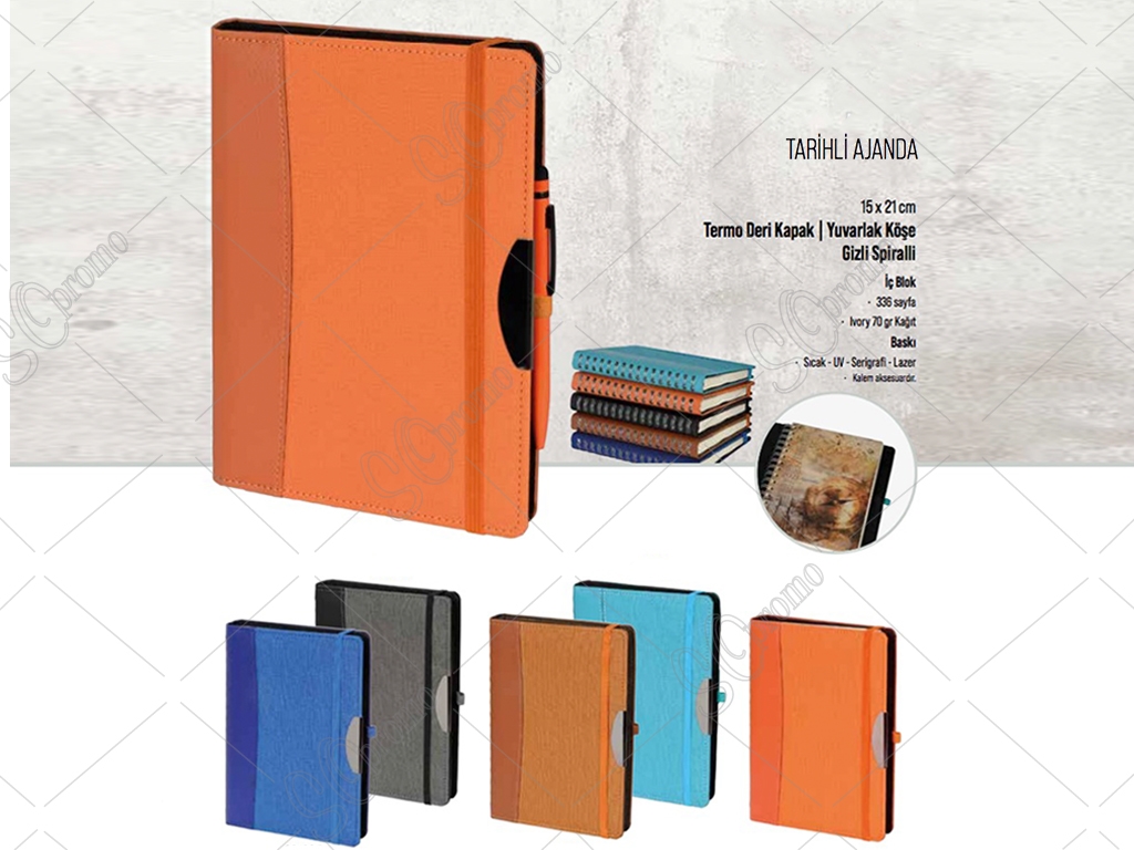 Gizli Spiralli Termo Deri Kapaklı Tarihli Ajanda