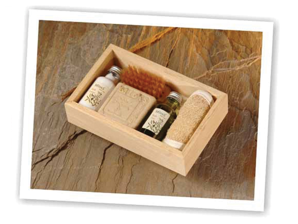 Mini Banyo Seti Ebat 180 x 115 x 45 mm Saf Zeytinyağı Sabunu 'Lavanta' Yüz Masaj Lifi - Tırnak Fırçası Vucüt Losyonu - Banyo Jeli